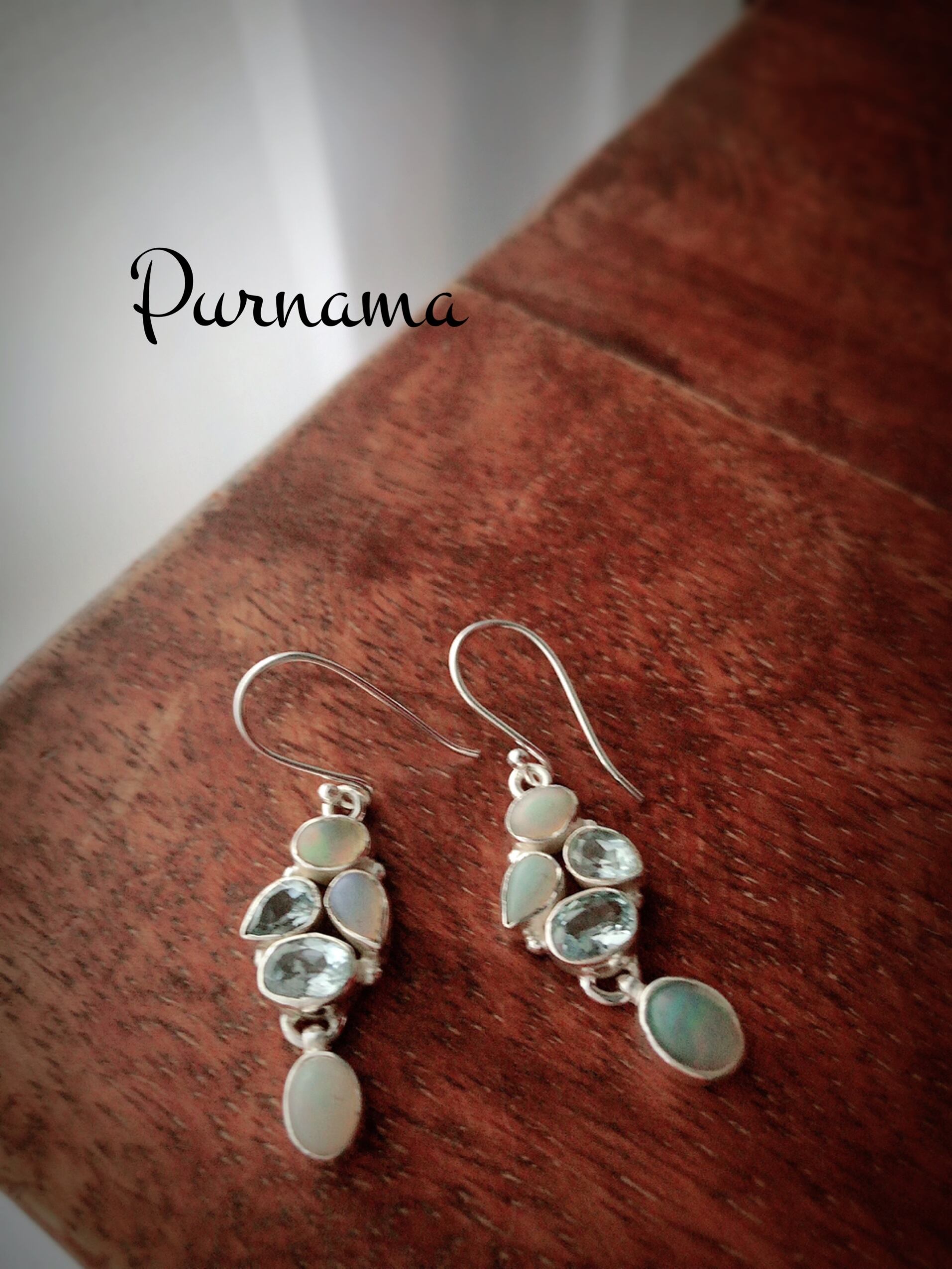 天然石ピアス オパール・アクアマリン5粒